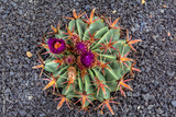 Cactus plant isolated on lava stone soil. Ferocactus latispinus