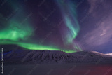The polar arctic Northern lights aurora borealis sky star in Norway travel Svalbard in Longyearbyen city the moon mountains