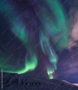 The polar arctic Northern lights aurora borealis sky star in Norway travel Svalbard in Longyearbyen city the moon mountains