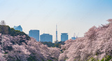 Cherry blossoms full bloom in spring season around Tokyo Chidorigafuchi park (northernmost part of Edo Castle). Many visitors to Japan choose to travel in cherry blossom season.