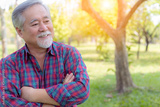 Portrait handsome old man. Attractive handsome grandfather cross arms and proud of his self. Grandpa get successful of his business and his life. He is retirement age. His terminal is stable of life