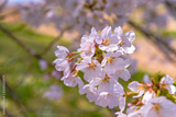 Close up full bloom beautiful pink cherry blossoms flowers ( sakura ) over the garden in springtime sunny day with soft natural background