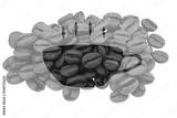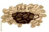 Symbolic coffee cup cut out from a picture of coffee beans against a light background