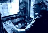 Train driver checking engine of train and gesture the hand to already from the station