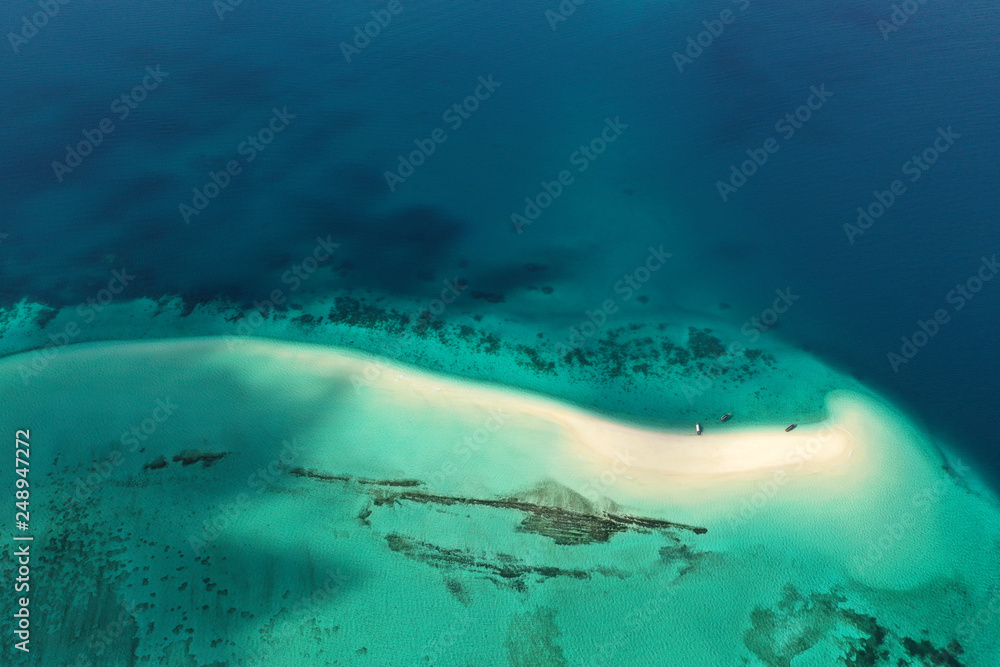 The beautiful tropical Island of Zanzibar aerial view. sea in Zanzibar beach, Tanzania.