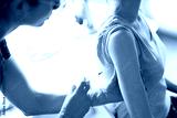Young female doctor giving an injection to the patient.