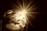 Das Erball, Weltall und binärer Hintergrund als Symbol für Technologie