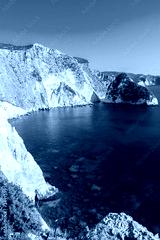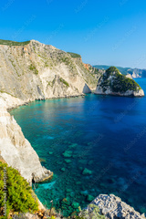 Greece, Zakynthos, Cape plakaki azure waters and green isle at coastline
