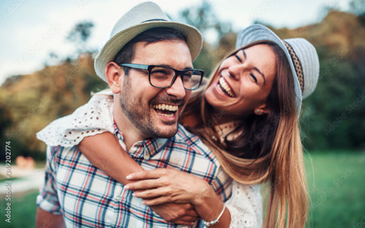 Meeting in the park. Boyfriend carrying his girlfriend on piggyback. Love, dating, romance