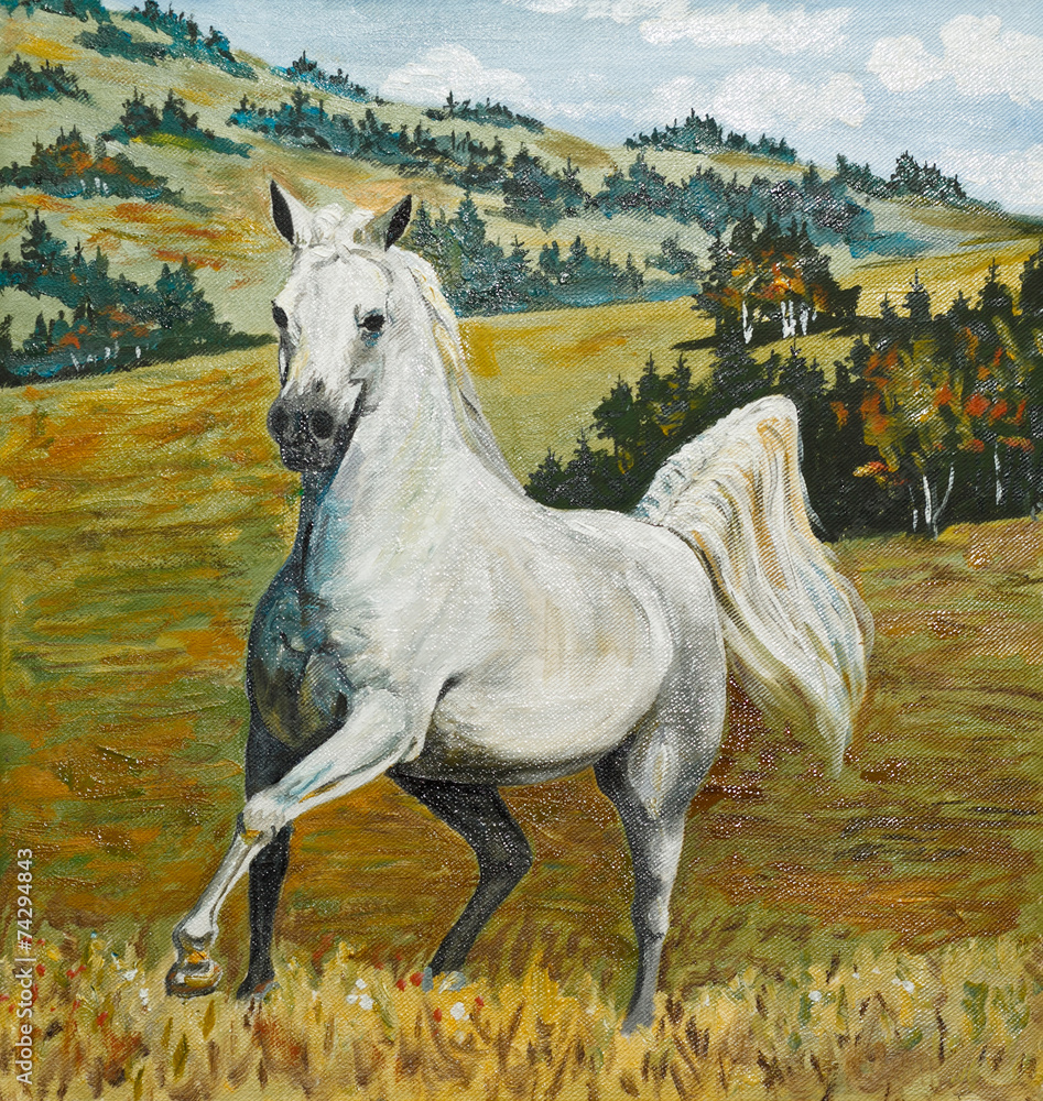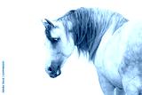 Grey andalusian horse with long mane close up portrait on white background. High key image