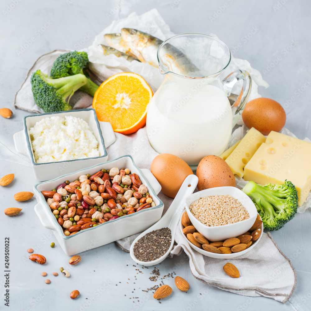 Assortment of healthy calcium source food