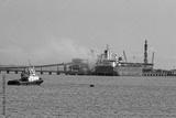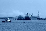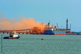 Loading bulk carrier ship with bauxite aluminum ore at Kamsar port, Guinea.