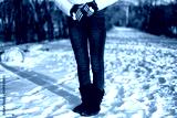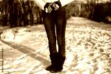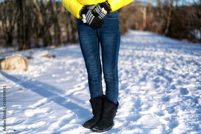 woman below waist in winter scene on snow