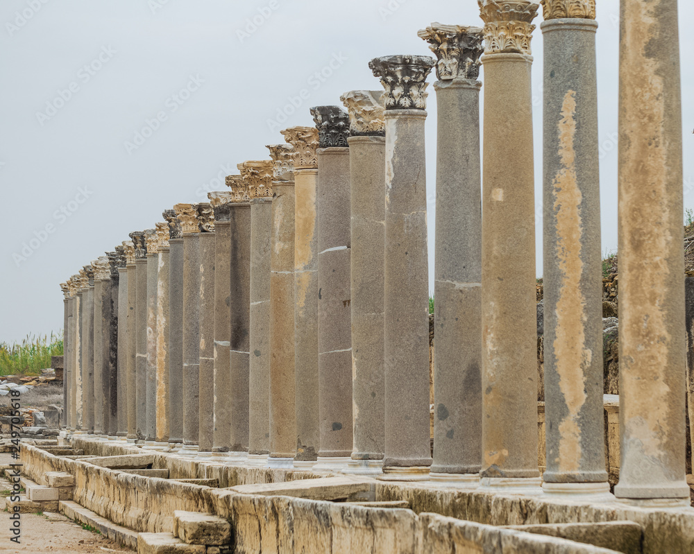 Historical site of Perge or Perga in Antalya, Turkey. Vast remains of prosperous Roman city. Ancient Perge city existed from X century before Christ till VIII of our era.