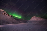 The polar arctic Northern lights aurora borealis sky star in Norway travel Svalbard in Longyearbyen city the moon mountains