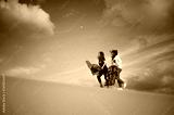 Two pretty women have fun in the dunes of Bologna, Andalucia Spain.