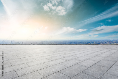 Panoramic city skyline and buildings with empty square floor in Shanghai,high angle view