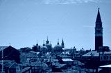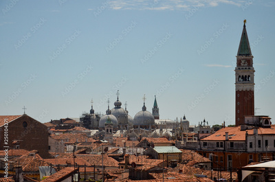 Domes of St Mark's Basilica on San Marco square, Venice, Italy. Famous medieval architecture in central Venice