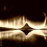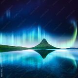 Green aurora light behind kirkjufell mountain in Iceland, Europe