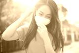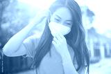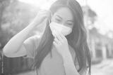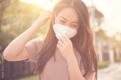 Female wearing N95 Respiratory Protection Mask against air pollution. Healthcare concept.
