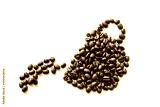 Roasted coffee beans in a shape of a cup pouring or spilling coffee