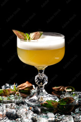 Alcoholic drinks and cocktails for bars and restaurants with ice on a black background in glass glasses. For the menu.