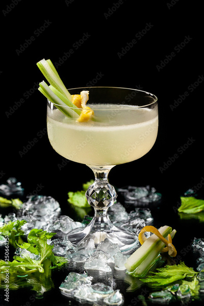 Alcoholic drinks and cocktails for bars and restaurants with ice on a black background in glass glasses. For the menu.