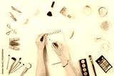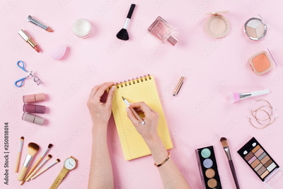 Beauty blogger with makeup cosmetics.