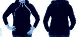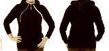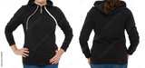 Front back and rear black sweatshirt view. Woman in template hoody clothes for print and copy space isolated on white background. Hoody Mockup. Cropped image