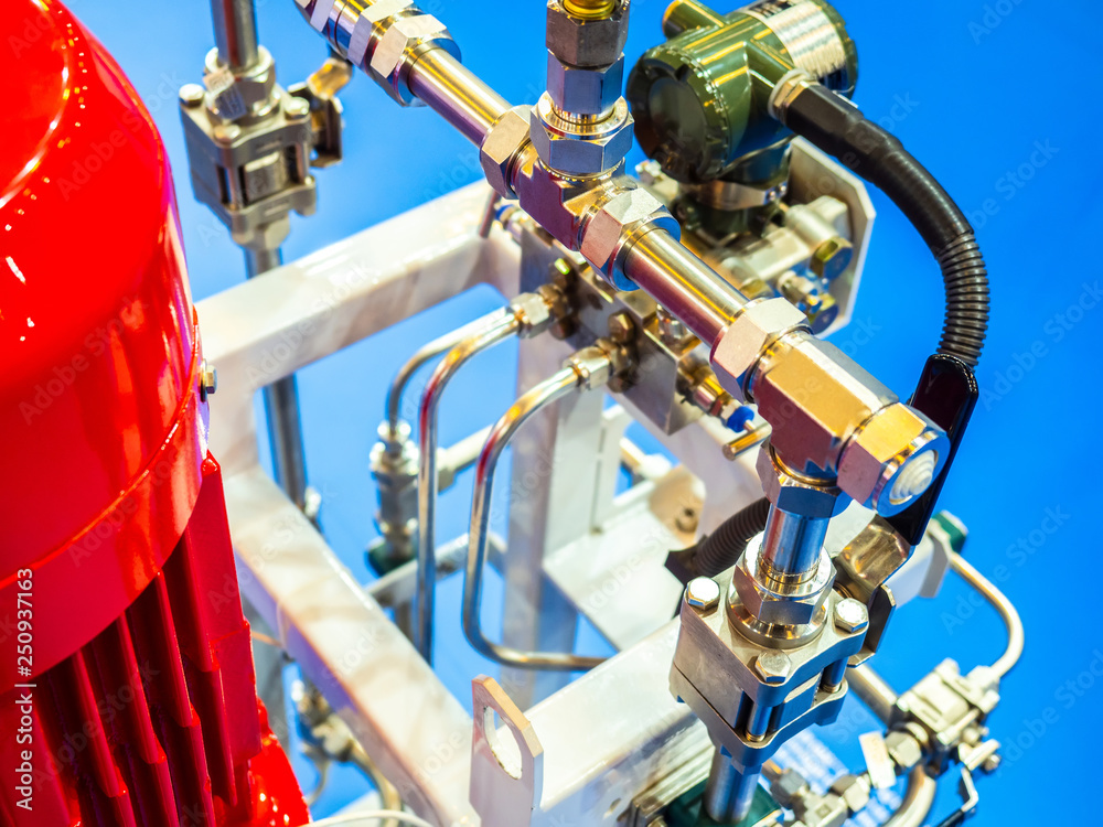 Industrial equipment with pipes. Hydraulic power system. Hydraulics. Industry.