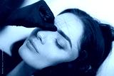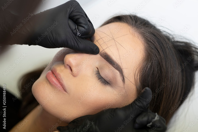 Beautician in the saloon doing the perfect architecture of eyebrows.
