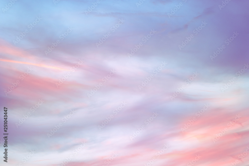 Twilight sky with effect of light pastel tone. Colorful sunset of soft clouds.