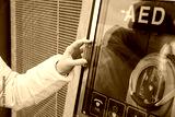 medicine cardiopulmonary resuscitation emergency call. Caucasian woman uses telephone calling 911 help. device box aed automatic defibrillator diseases, death, cardiac arrest and heart attack