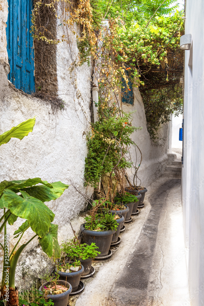 Old narrow street in Anafiotika, Plaka district, Athens, Greece