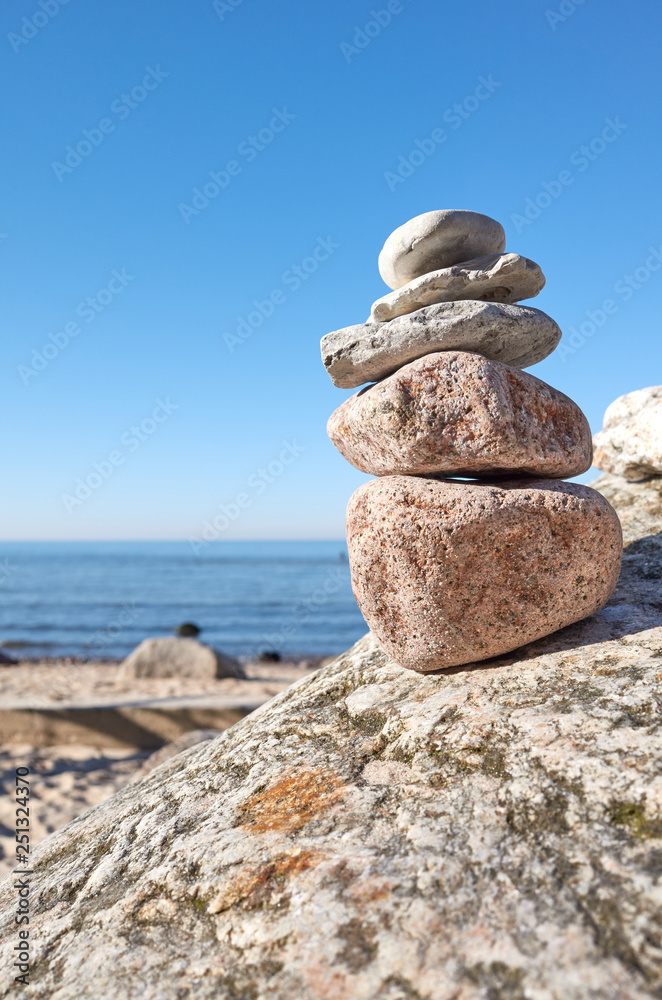 Stack of stones on a beach, balance and harmony concept, selective focus.