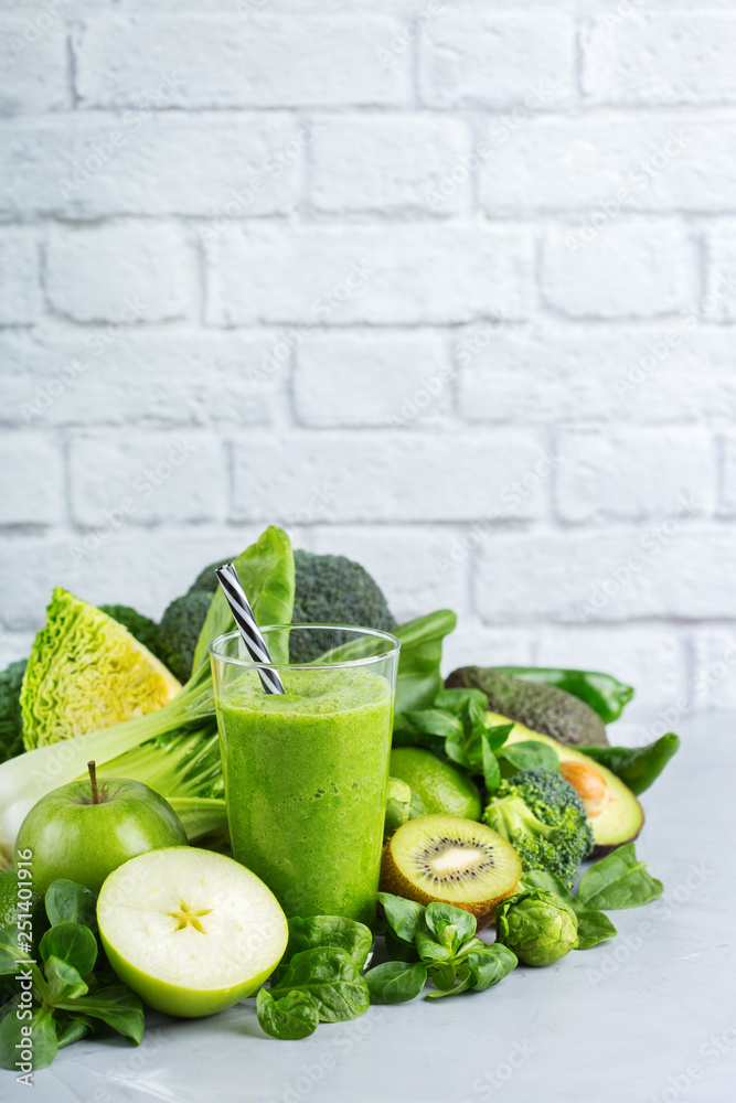 Green smoothie with vegetables for healthy, raw, vegan diet