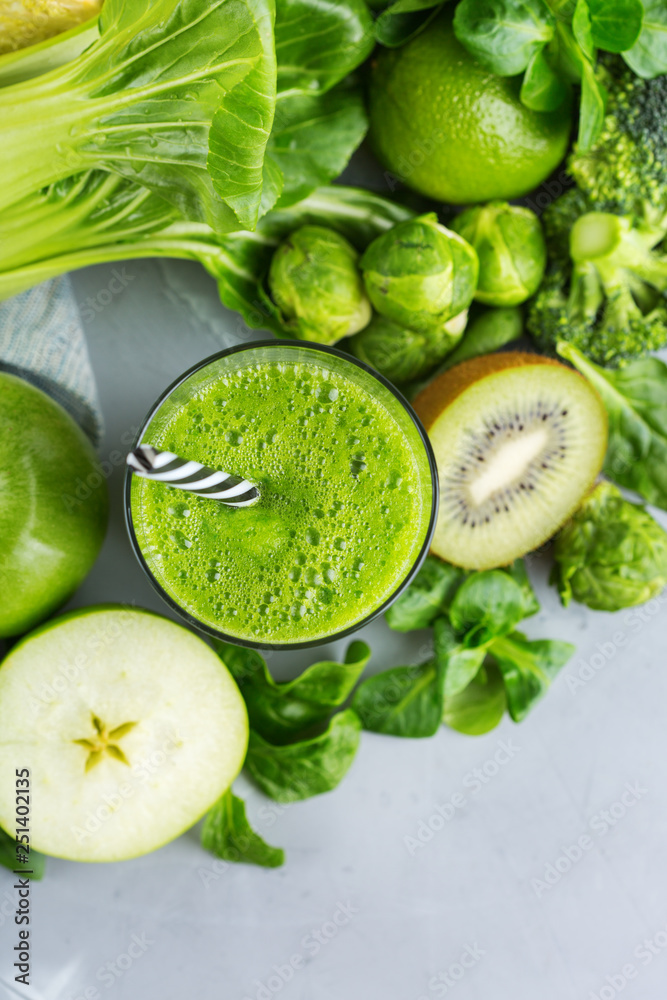 Green smoothie with vegetables for healthy, raw, vegan diet