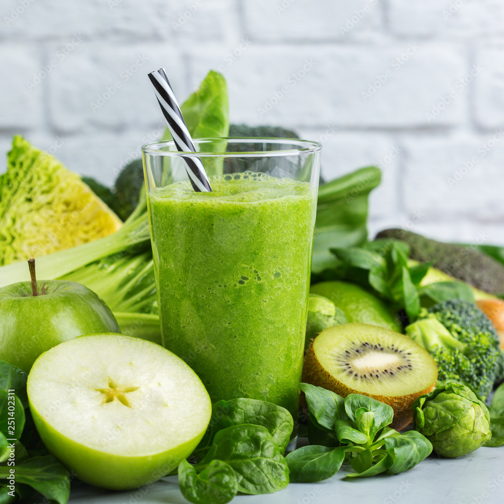Green smoothie with vegetables for healthy, raw, vegan diet