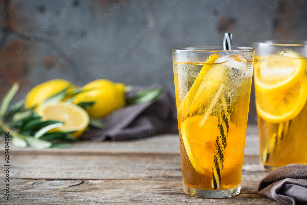 Lemon mint iced tea cocktail refreshing drink for summer days