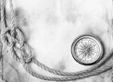 old compass and rope on grunge background
