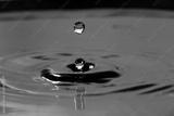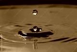 Closeup water drop falling and dripping from the top to the surface of water that makes two water drops. Water drop splash and make beautiful circles and ripple on aqua surface with blue color.