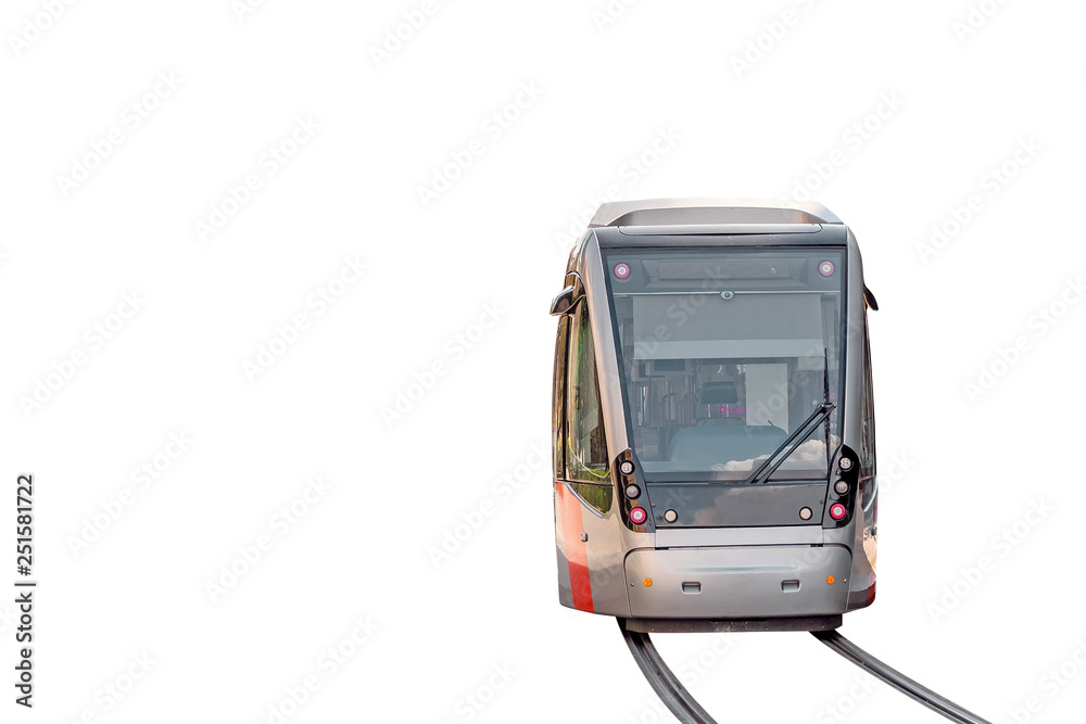 Modern tramway isolated with rails on white background