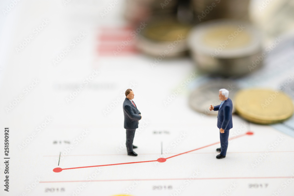 Miniature business men discuss on line chart of business growth .Copy space and business concept. -Image.