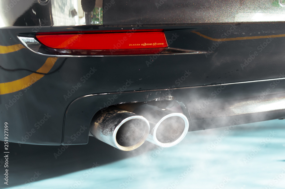 Car smog and air pollution from the exhaust pipe.