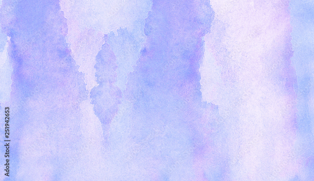 Vintage light purple watercolor paint hand drawn illustration with paper grain texture for aquarelle design. Abstract grunge violet gradient violet water color artistic brush paint splash background