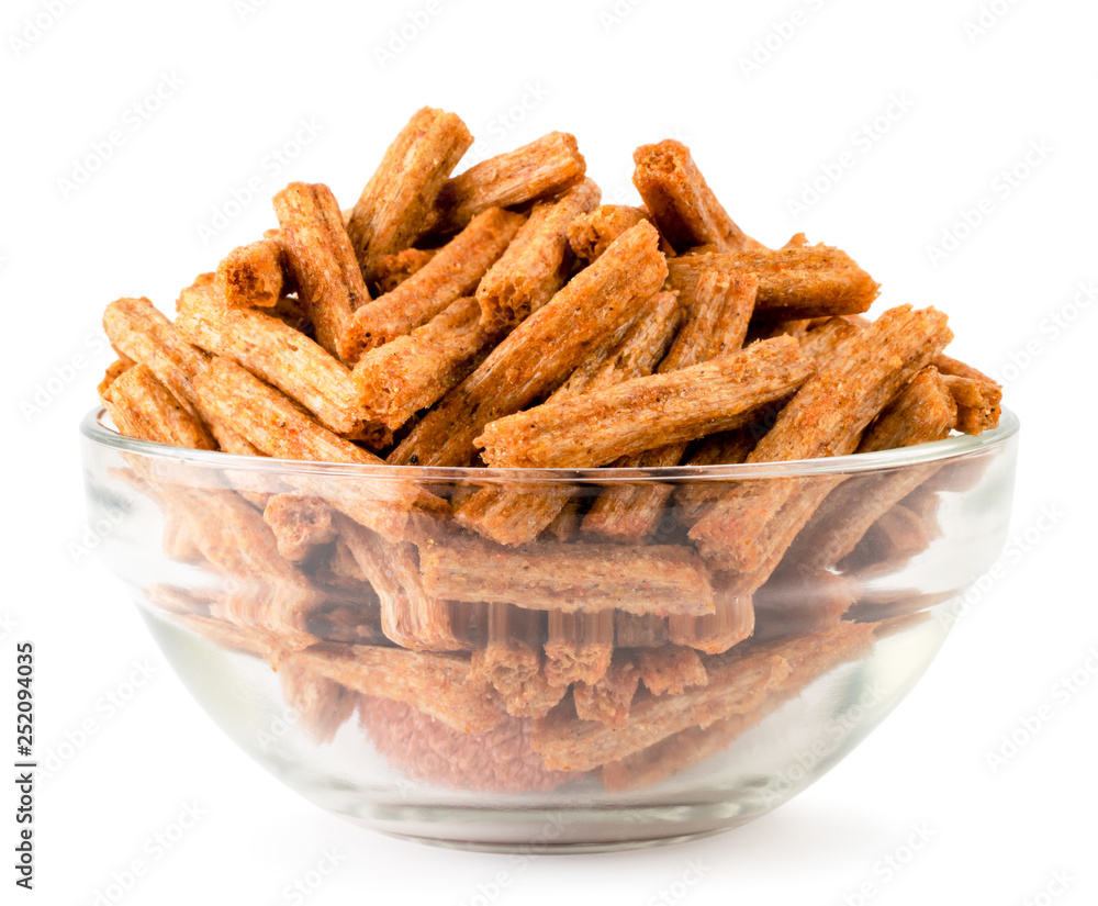 Crackers for beer in a glass plate on a white, isolated.