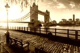 Sonnenaufgang hinter der Tower Bridge in London, Hauptattraktion für Touristen in der Stadt, Großbritannien