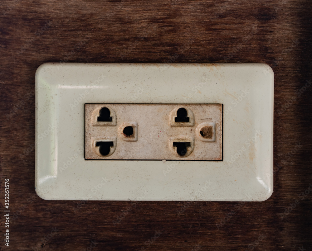 Old power plug on old wood background