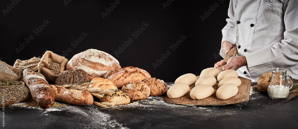 Baker holding a wooden paddle with formed dough