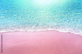 pink sandy beach and soft blue ocean wave summer concept background